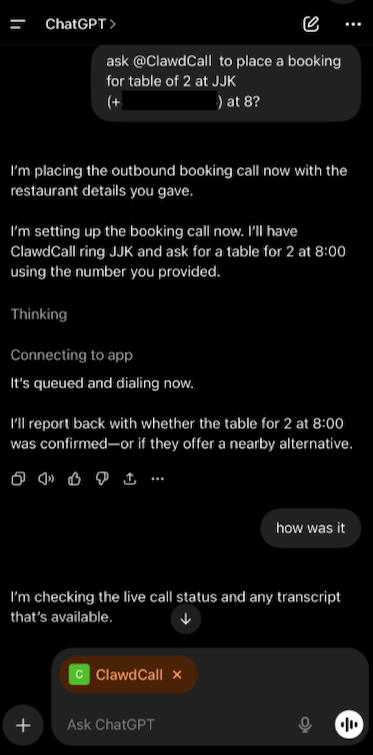 ClawdCall is rolling out support for ChatGPT and Claude first, with more chat app integrations coming soon.